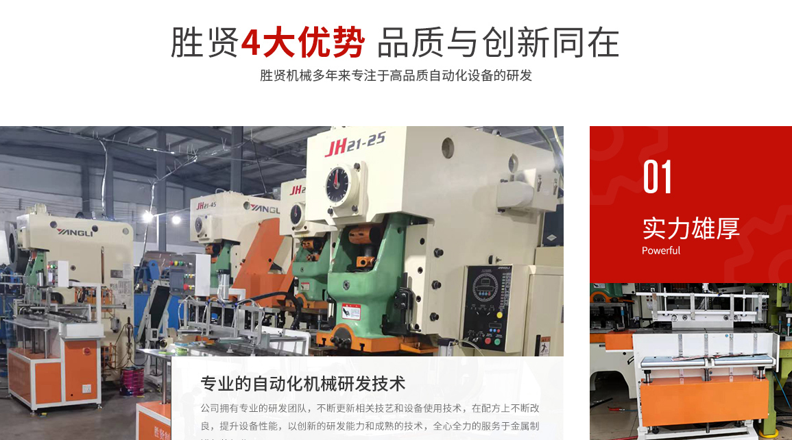 東莞市勝賢機械設(shè)備有限公司,是一家專業(yè)從事金屬制罐包裝行業(yè)的整套自動化設(shè)備和模具開發(fā)、制造與銷售的公司,擁有成熟的技術(shù)和創(chuàng)新開發(fā)能力。我們擁有有一批多年從事設(shè)計、研究開發(fā)的工程師,和設(shè)備、模具制作的技術(shù)人才。不斷推進(jìn)制罐行業(yè)向高效、環(huán)保、節(jié)能、操作簡易化的方向發(fā)展。 公司主要產(chǎn)品:多次元機械手設(shè)備生產(chǎn):含片盒蓋/底自動生產(chǎn)線,煙盒蓋/底自動生產(chǎn)線,醫(yī)藥盒蓋/底自動生產(chǎn)線,茶葉罐蓋圈/酒罐蓋圈自動生產(chǎn)線,酒罐蓋自動生產(chǎn)線、茶葉罐拍底自動生產(chǎn)線等等。 罐身自動扣骨機生產(chǎn):茶葉罐/酒罐/化妝品罐/內(nèi)衣罐等等. 其中多次元機械手專為兩片盒的生產(chǎn)和三片罐的蓋、底、蓋圈、拍底蓋等的生產(chǎn)而設(shè)計,...
